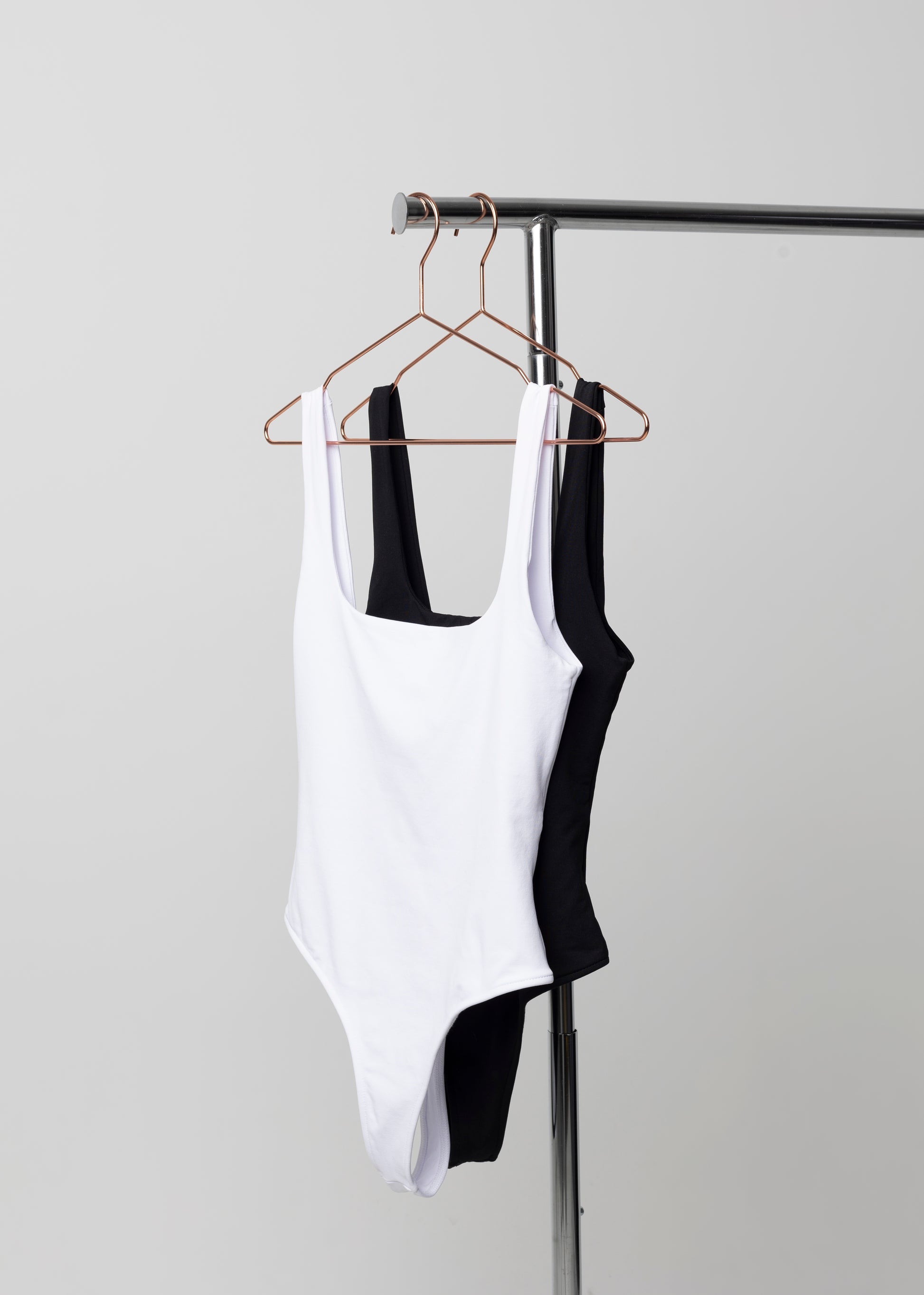 Body com decote quadrado. Completamente forrado. Devido à sua elasticidade não tem abertura entre pernas.