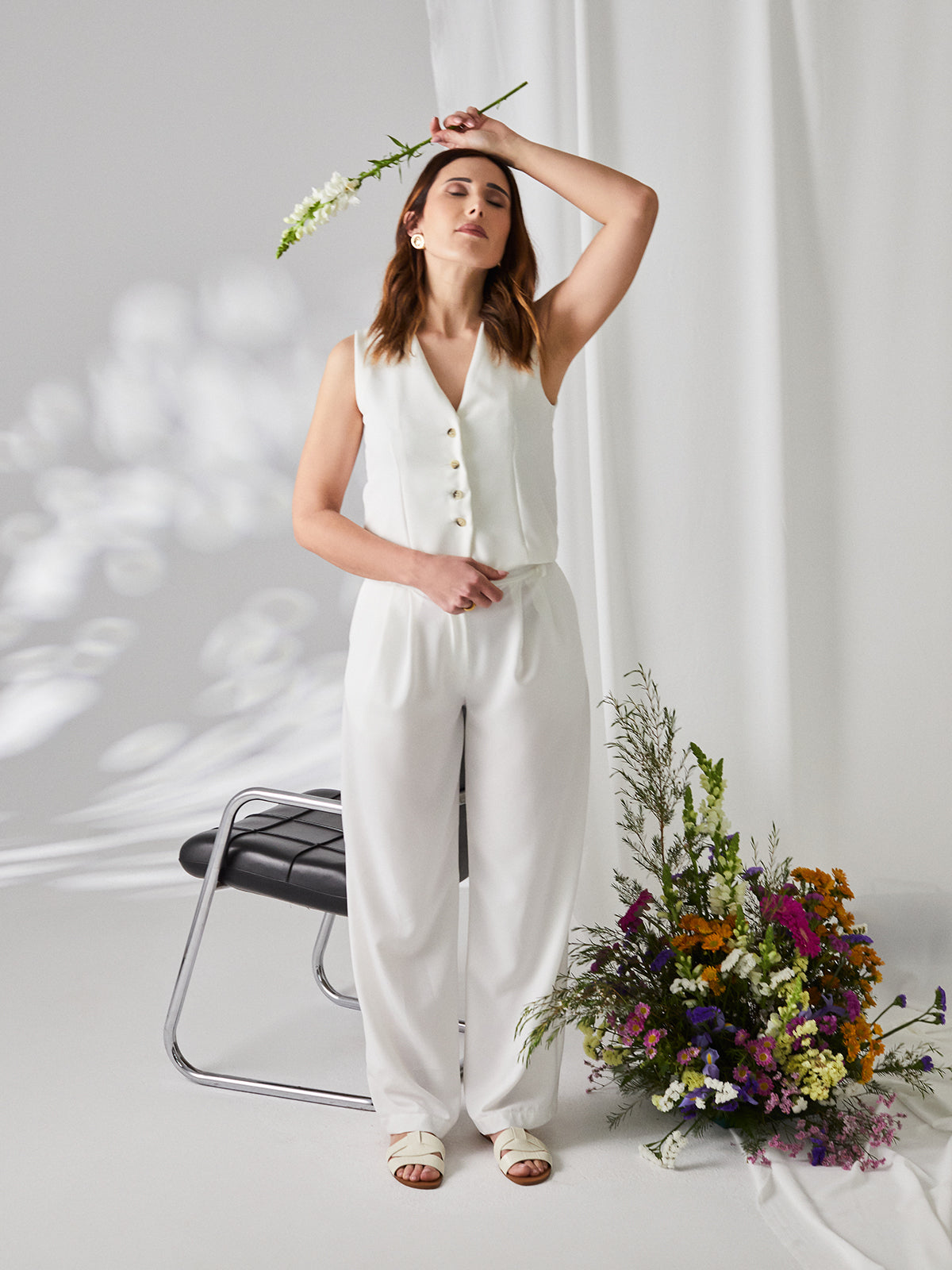Abotoa com botões à frente. Forro combinado no mesmo tom.